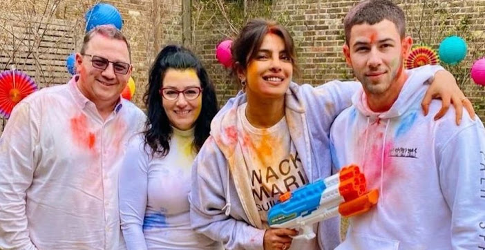 दिल्ली (संस्कार न्यूज़) ग्लोबल स्टार प्रियंका चोपड़ा और उनके पति निक जोनस (Nick Jonas) सोशल मीडिया पर फैंस को अपने लाइफ इवेंट से जुड़ी हर अपडेट देते हैं | अब उन्होंने होली के त्योहार पर फोटोज शेयर की हैं | पूरा जोनस परिवार होली के रंगों में रंगा नजर आ रहा है | फोटो में प्रियंका पति निक जोनस और सास-ससुर के साथ नजर आ रही हैं| इन्हें देखकर यही लग रहा है कि जोनस फैमिली ने जमकर होली खेली है |